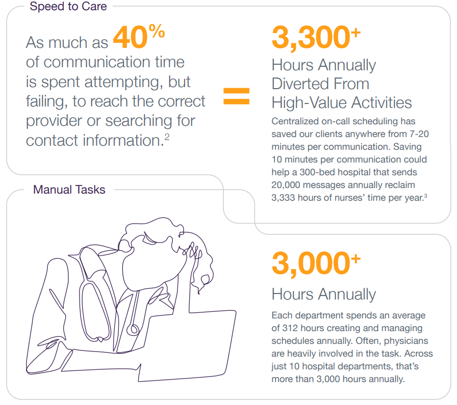 Rather than hiring additional personnel to handle time-consuming manual tasks associated with managing call schedules and keeping them up to date, leading hospitals and health systems implement a single on-call scheduling solution across their enterprise to reap significant benefits.