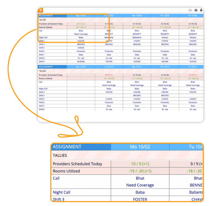 Lightning Bolt is also able to equalize shifts over time, meaning that weekend call and rounding shifts are spread evenly among the team. If a provider works a lighter schedule one month, Lightning Bolt doesn’t just forget. Over time, it will ensure that other providers also receive the same amount of time off.