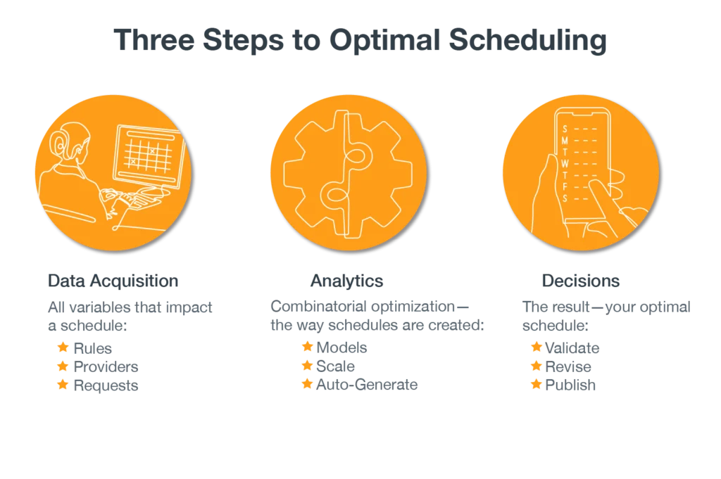 So, schedulers, it’s time to ditch the Excel sheets in favor of rule-based scheduling that boosts efficiency, improves resource management, and enhances provider satisfaction. Contact us today to unlock the power of combinatorial optimization.